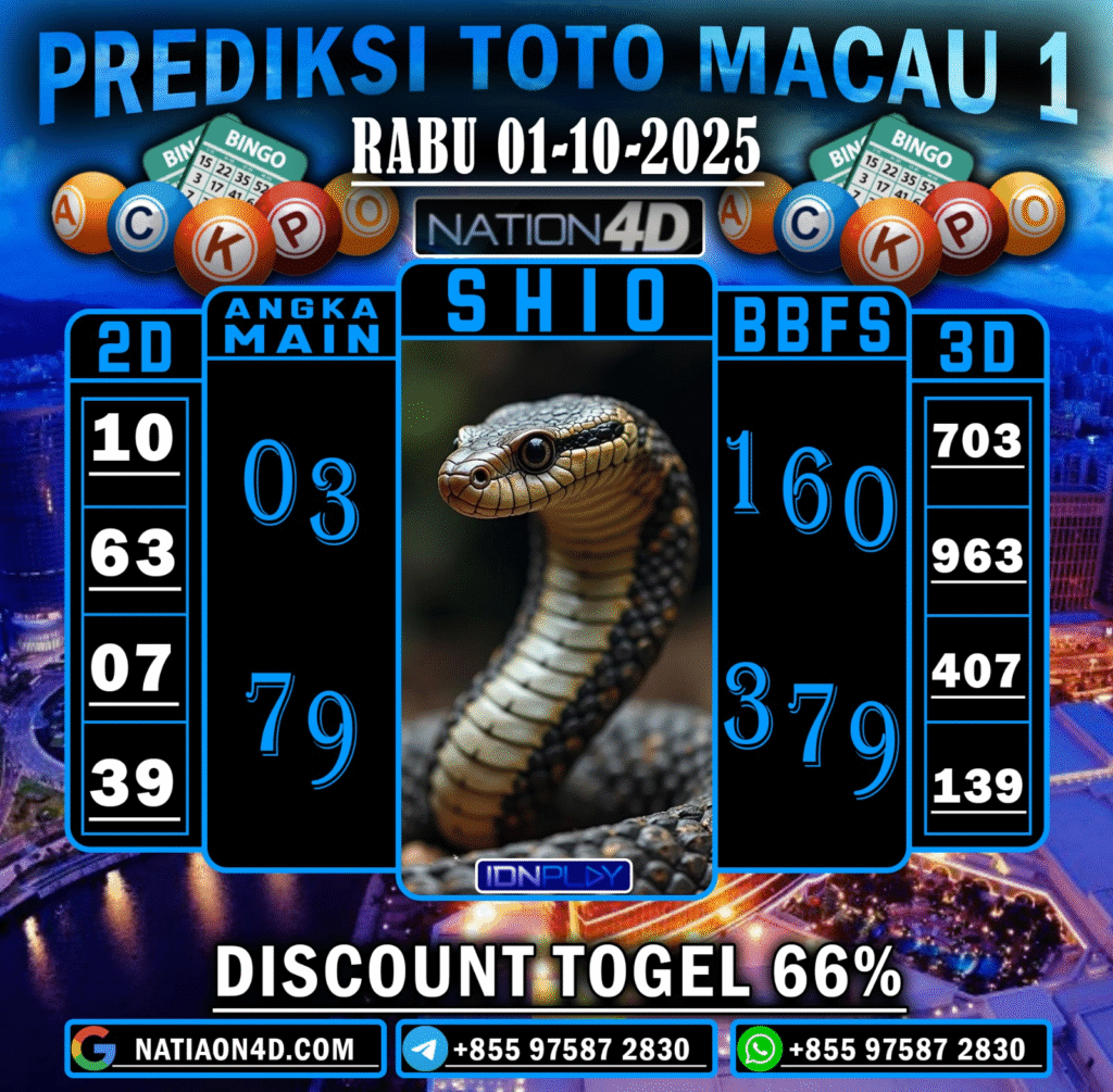 PREDIKSI & SYAIR TOGEL TOTO MACAU 1 RABU 01-10-2025