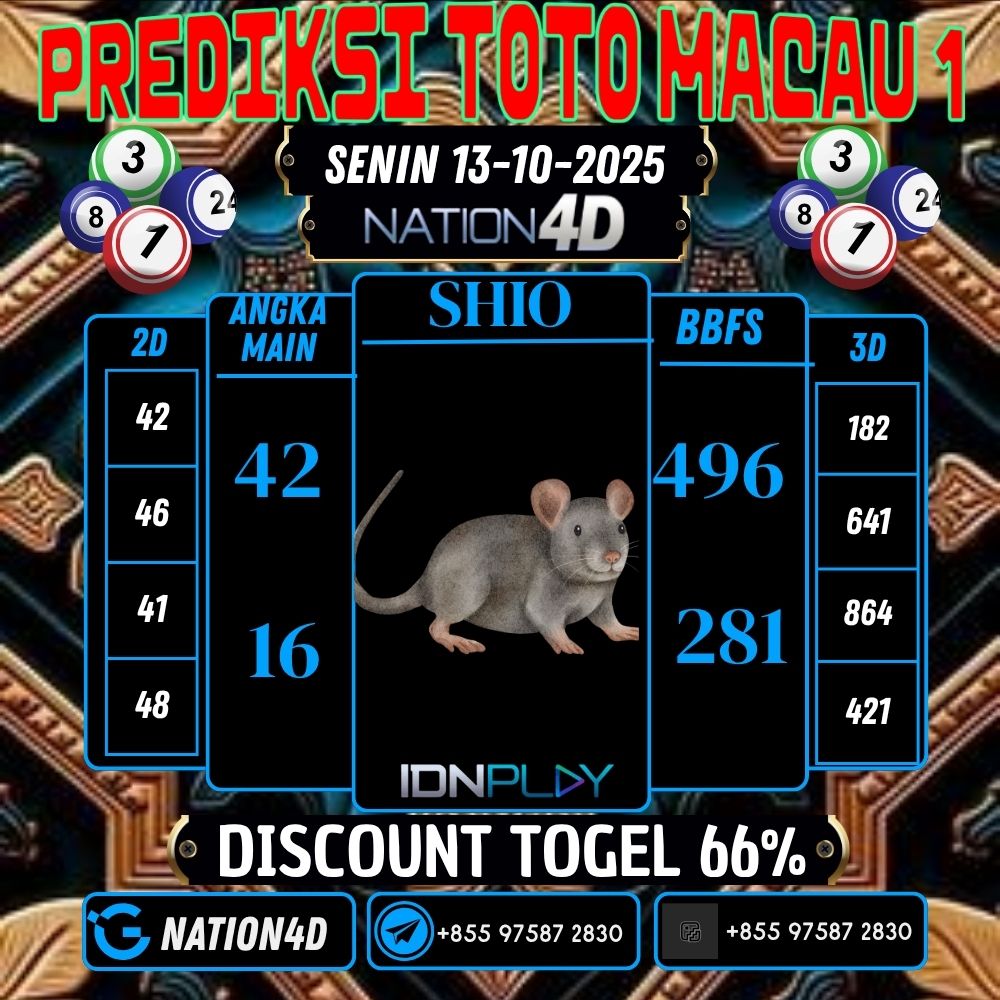 PREDIKSI & SYAIR TOGEL TOTO MACAU 1 SENIN 13-10-2025