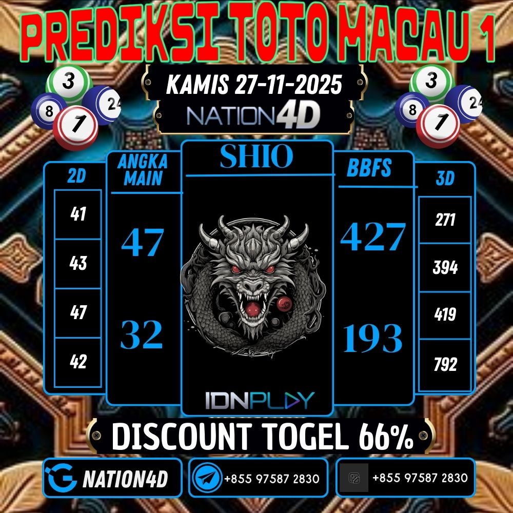 PREDIKSI & SYAIR TOGEL TOTO MACAU 1 KAMIS 27-11-2025