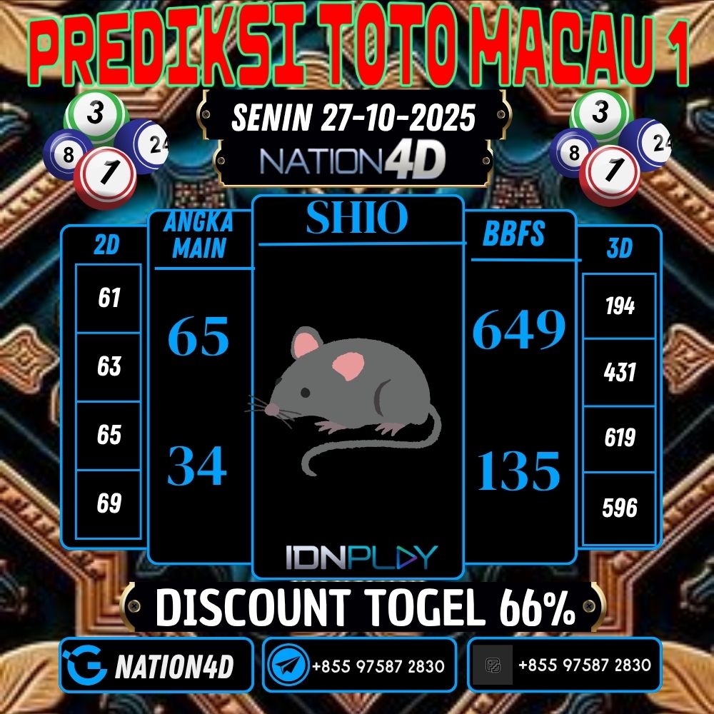 PREDIKSI & SYAIR TOGEL TOTO MACAU 1 SENIN 27-10-2025