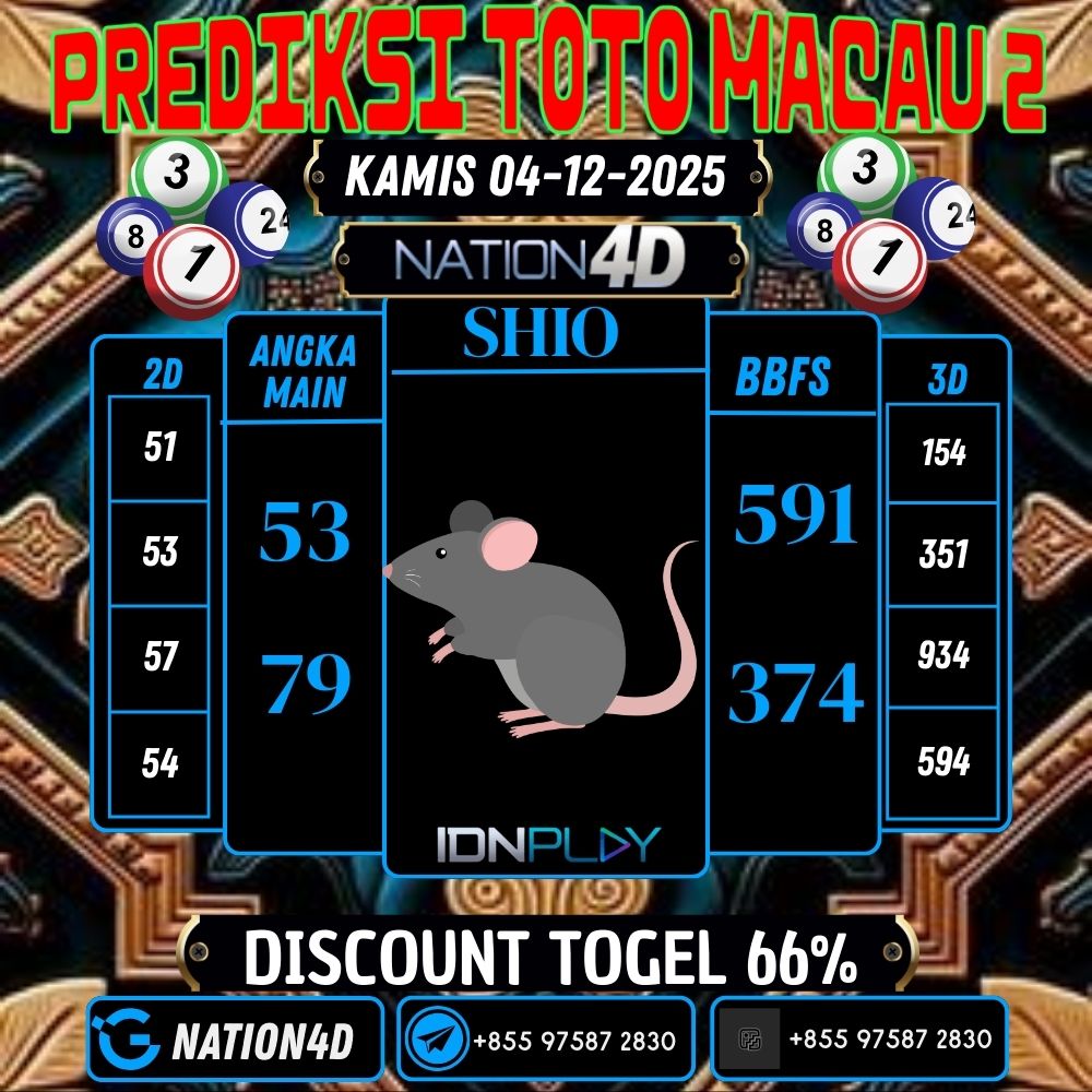 RUMUSAN ANGKA PASARAN TOTO MACAU 2 04 DESEMBER 2025 . Berikut rumusan angka prediksi yang kami saring dari beberapa rumusan togel. Ini hanyalah sebuah prediksi dari kami untuk anda semua semoga dengan adanya prediksi yang kami berikan dapat membantu anda JP paus. Saran utama dari kami yaitu selalu utamakan prediksi dari anda sendiri. Bandar Togel Terbaik, Bandar Togel.