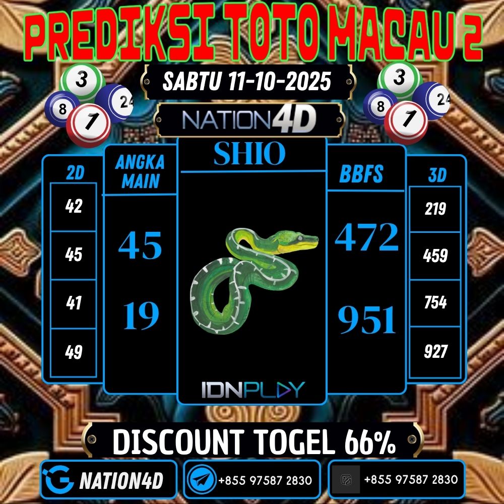 PREDIKSI & SYAIR TOGEL TOTO MACAU 2 SABTU 11-10-2025