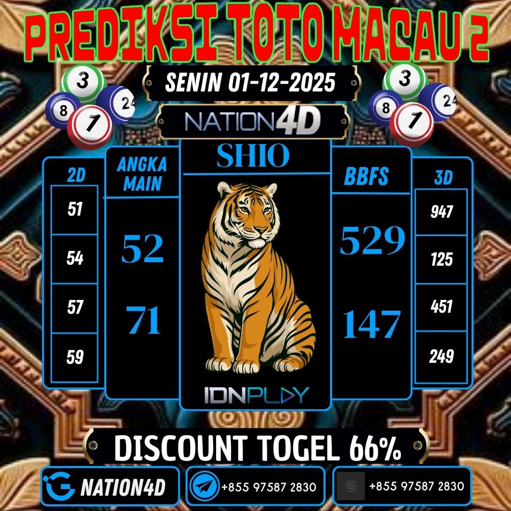PREDIKSI & SYAIR TOGEL TOTO MACAU 2 SENIN 01-12-2025