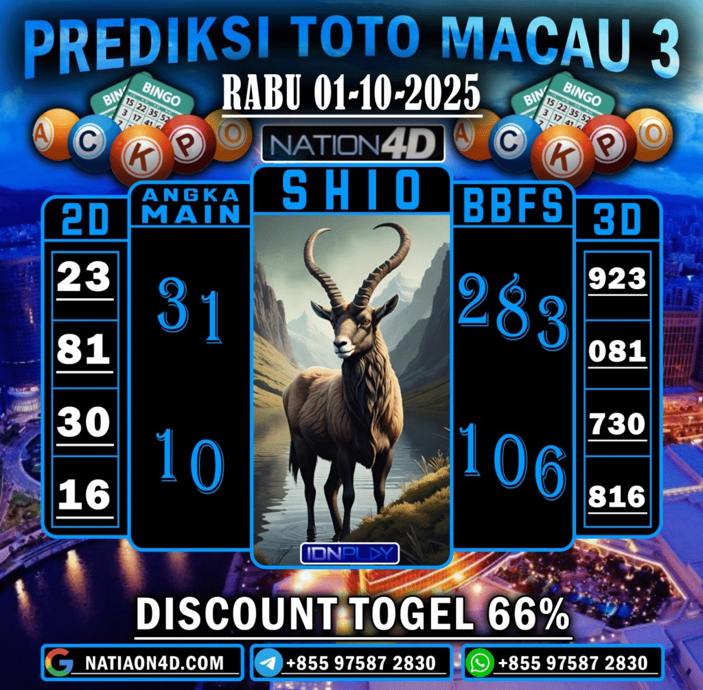 PREDIKSI & SYAIR TOGEL TOTO MACAU 3 RABU 01-10-2025