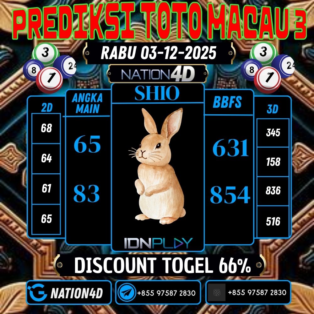PREDIKSI & SYAIR TOGEL TOTO MACAU 3 RABU 03-12-2025