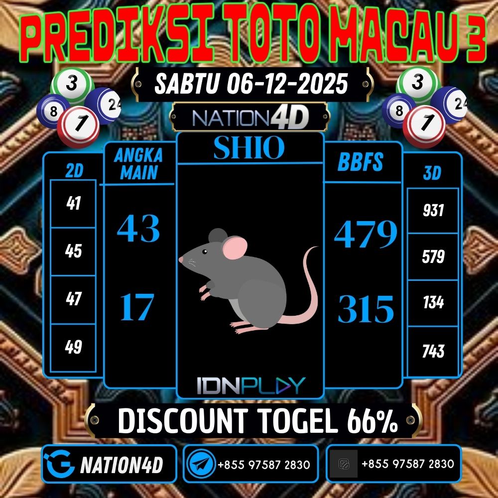 PREDIKSI & SYAIR TOGEL TOTO MACAU 3 SABTU 06-12-2025