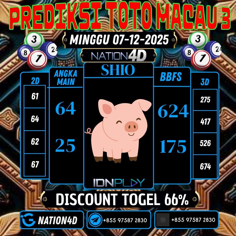 RUMUSAN ANGKA PASARAN TOTO MACAU 3 07 DESEMBER 2025 . Berikut rumusan angka prediksi yang kami saring dari beberapa rumusan togel. Ini hanyalah sebuah prediksi dari kami untuk anda semua semoga dengan adanya prediksi yang kami berikan dapat membantu anda JP paus. Saran utama dari kami yaitu selalu utamakan prediksi dari anda sendiri. Bandar Togel Terbaik, Bandar Togel.