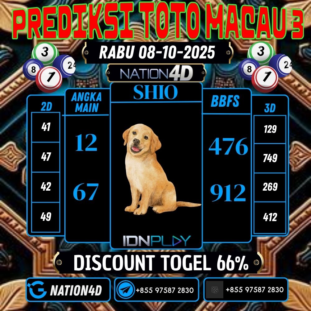 PREDIKSI & SYAIR TOGEL TOTO MACAU 3 RABU 08-10-2025