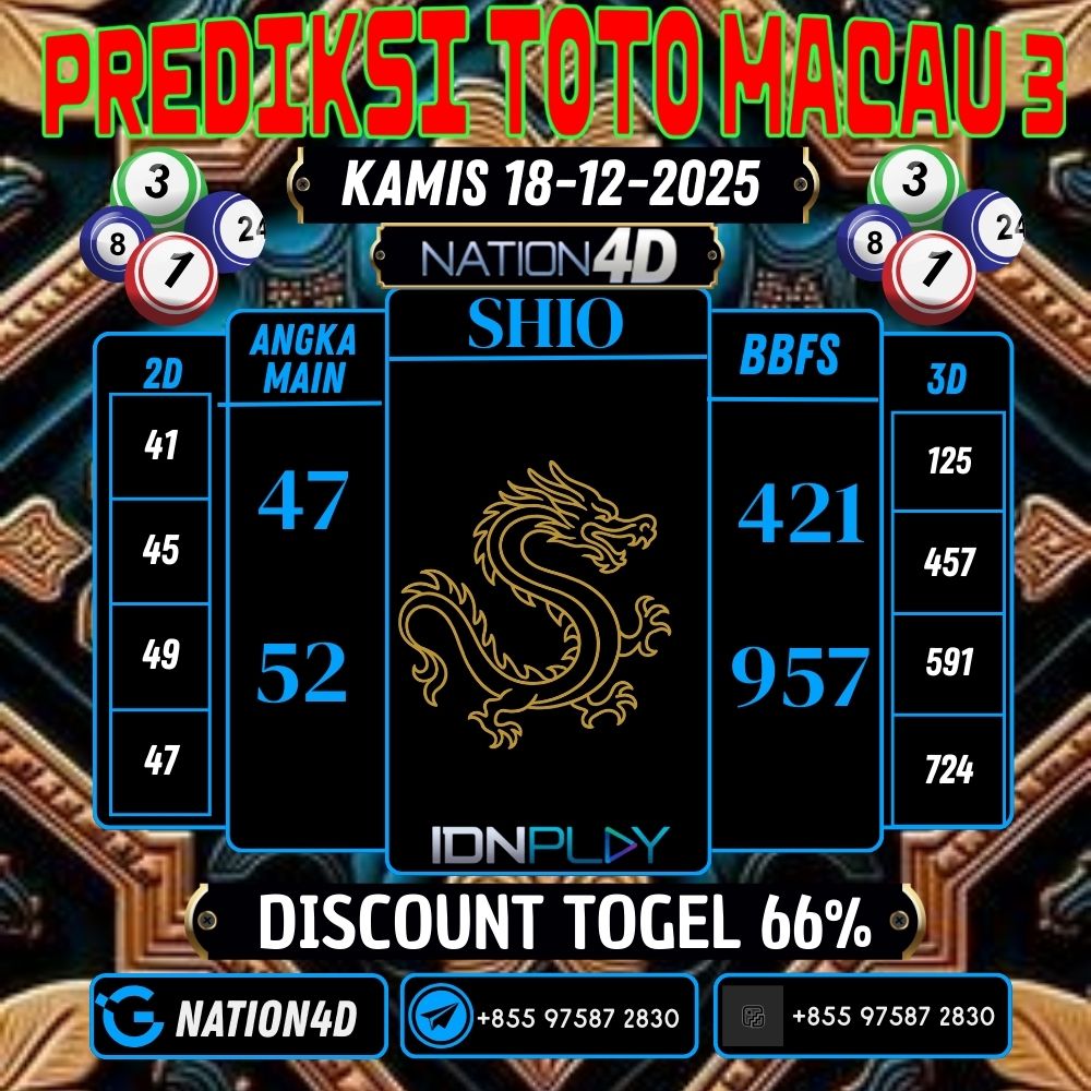 PREDIKSI & SYAIR TOGEL TOTO MACAU 3 KAMIS 18-12-2025