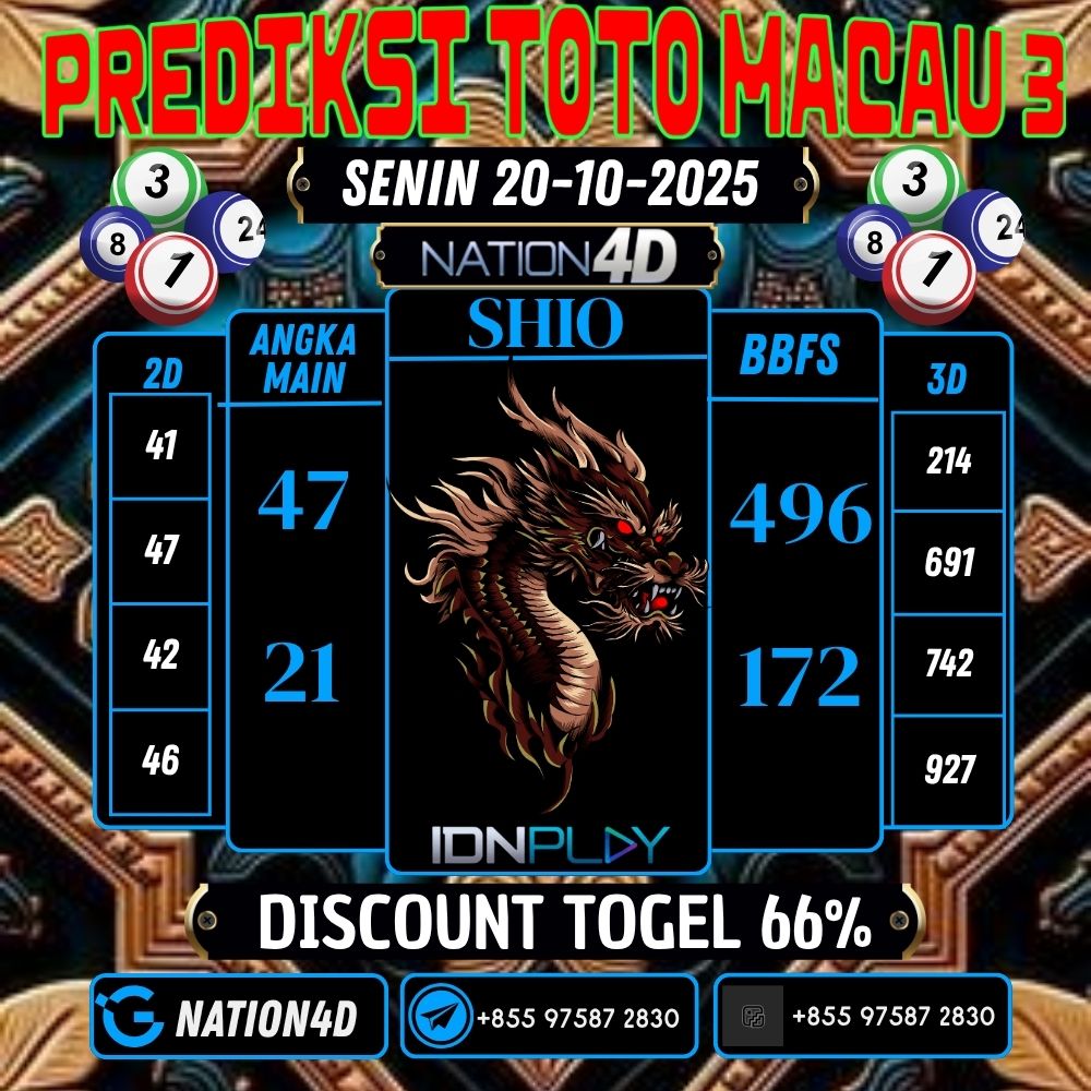 RUMUSAN ANGKA PASARAN TOTO MACAU 3 20 OKTOBER 2025