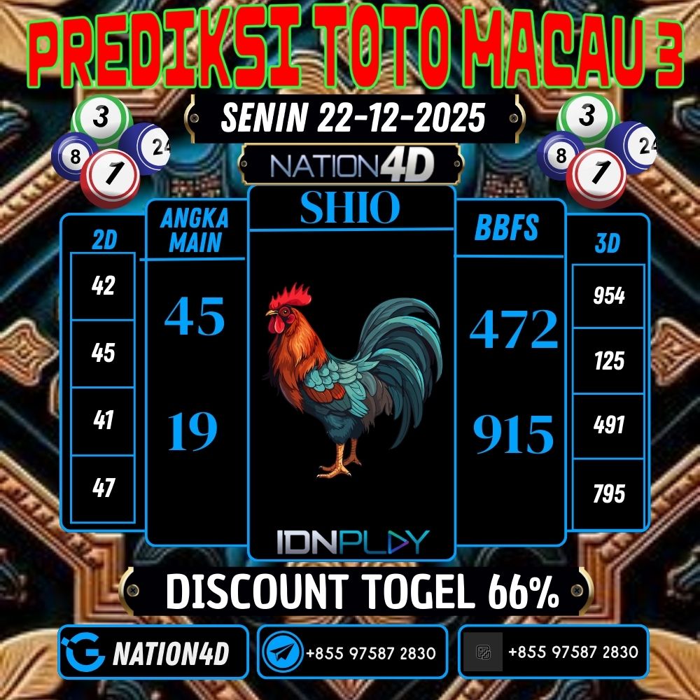 PREDIKSI & SYAIR TOGEL TOTO MACAU 3 SENIN 22-12-2025