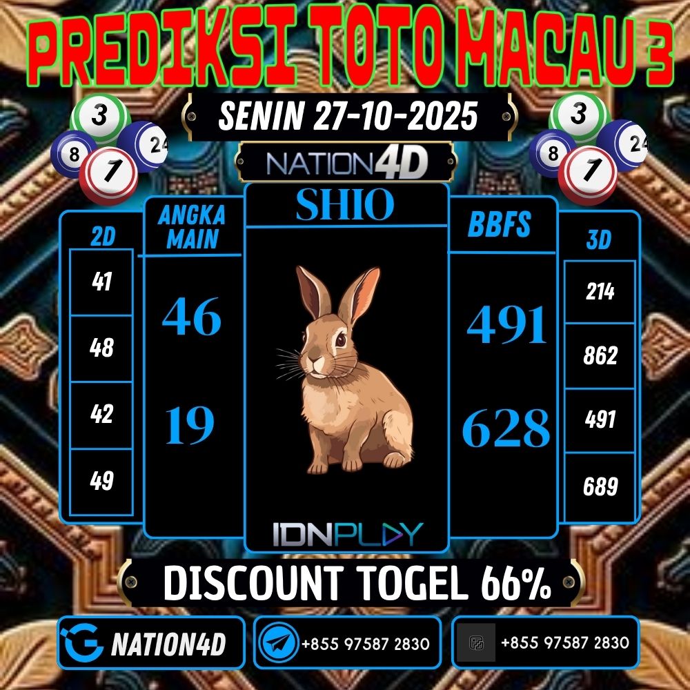 PREDIKSI & SYAIR TOGEL TOTO MACAU 3 SENIN 27-10-2025