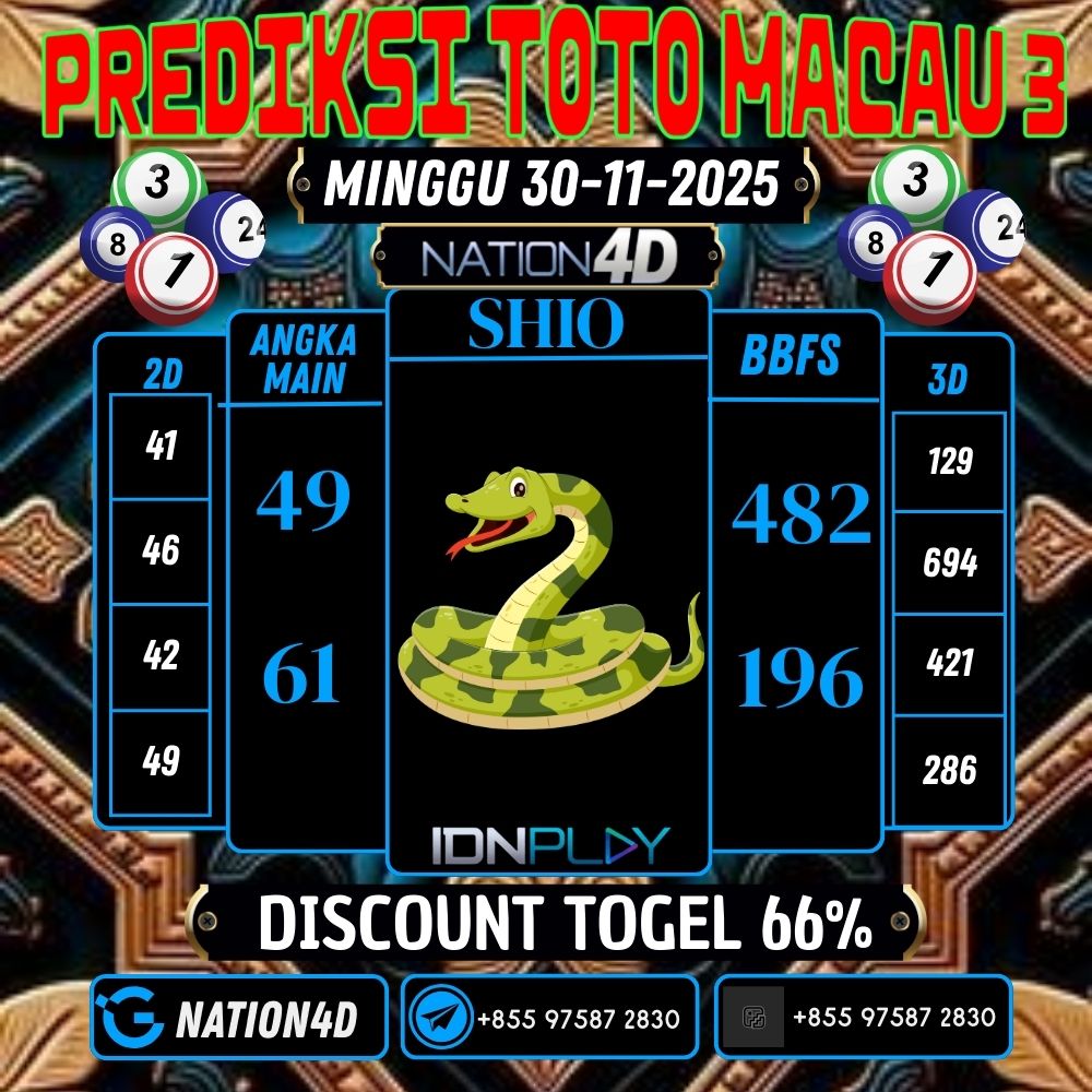 PREDIKSI & SYAIR TOGEL TOTO MACAU 3 MINGGU 30-11-2025
