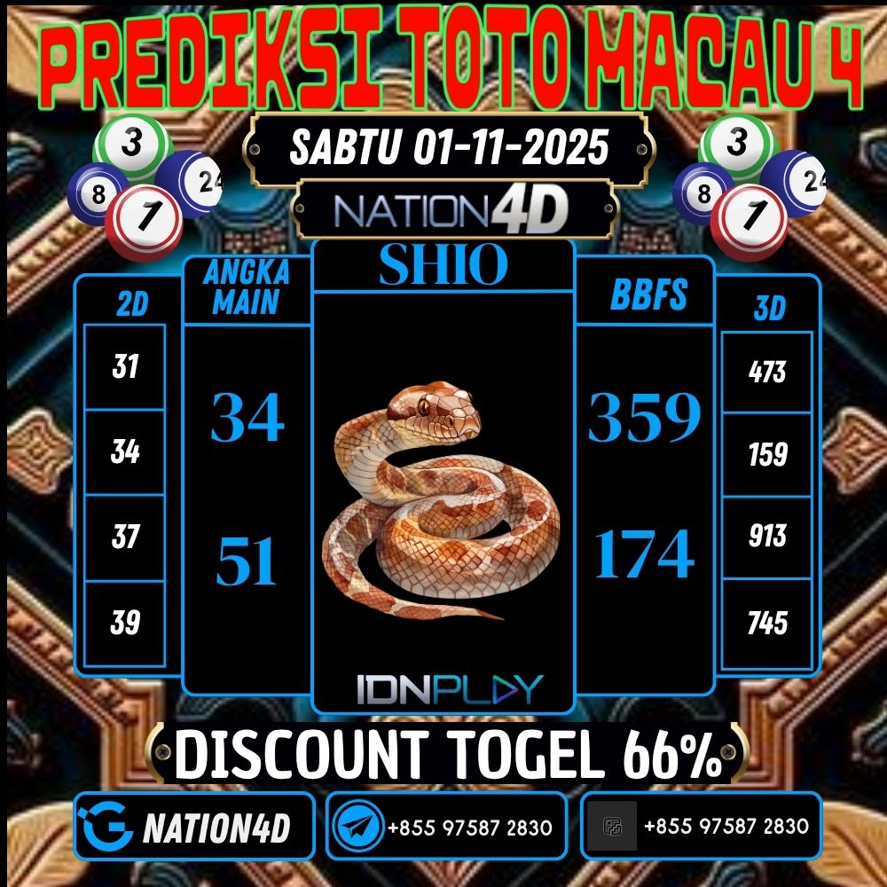 PREDIKSI & SYAIR TOGEL TOTO MACAU 4 SABTU 01-11-2025