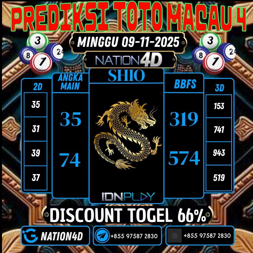 RUMUSAN ANGKA PASARAN TOTO MACAU 4 09 NOVEMBER 2025
