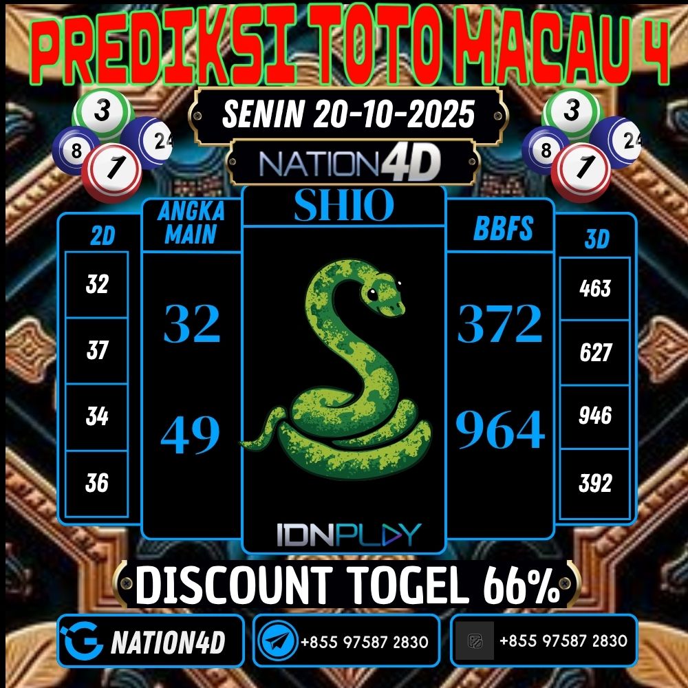 PREDIKSI & SYAIR TOGEL TOTO MACAU 4 SENIN 20-10-2025