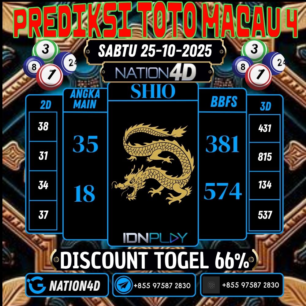 PREDIKSI & SYAIR TOGEL TOTO MACAU 4 SABTU 25-10-2025