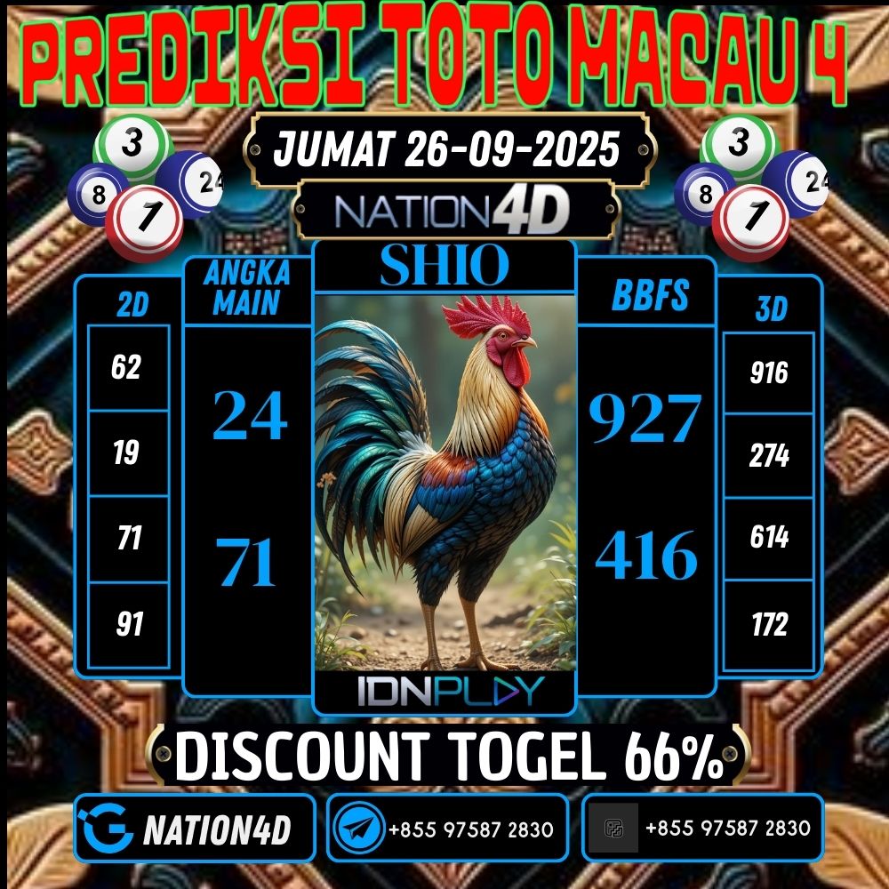 PREDIKSI & SYAIR TOGEL TOTO MACAU 4 JUMAT 26 -09-2025