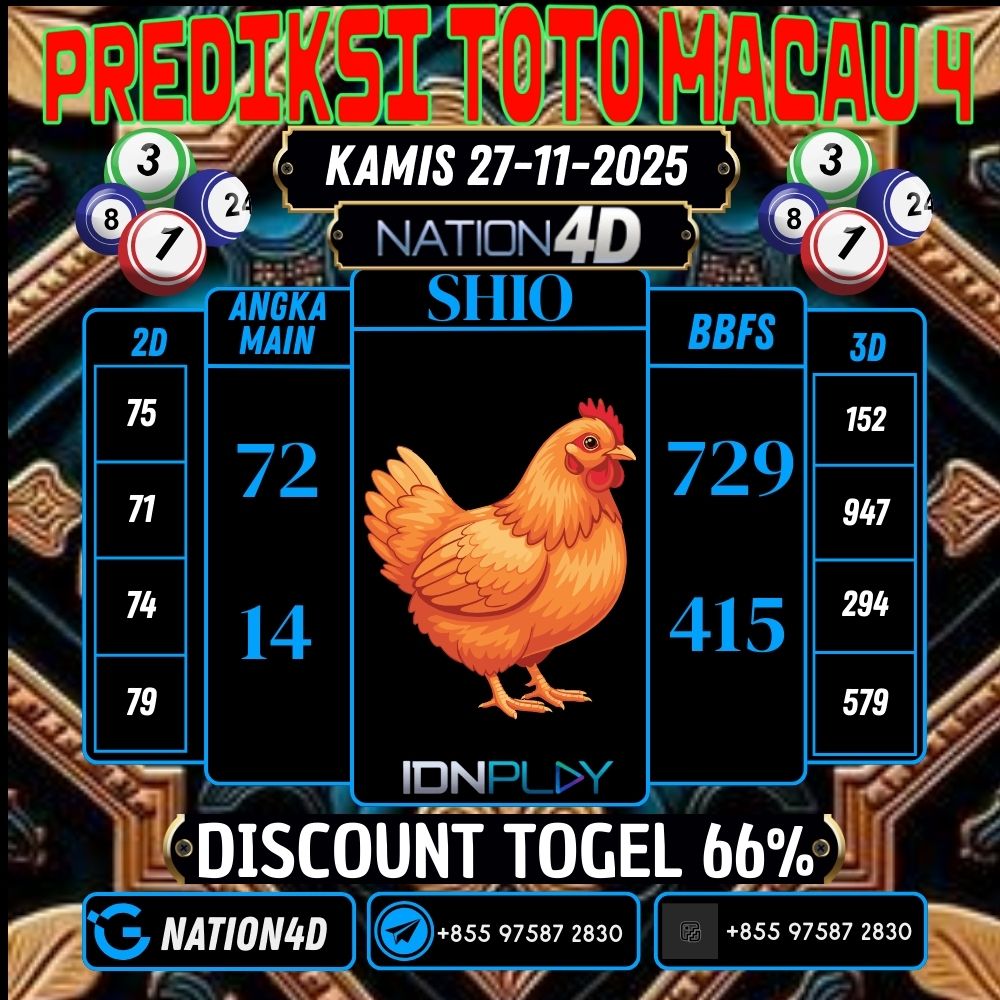 PREDIKSI & SYAIR TOGEL TOTO MACAU 4 KAMIS 27-11-2025