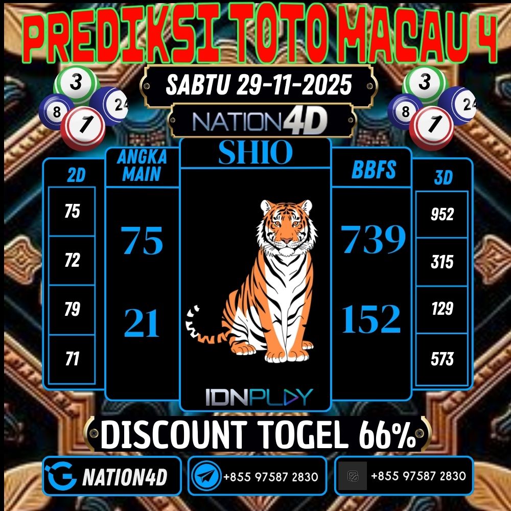 PREDIKSI & SYAIR TOGEL TOTO MACAU 4 SABTU 29-11-2025