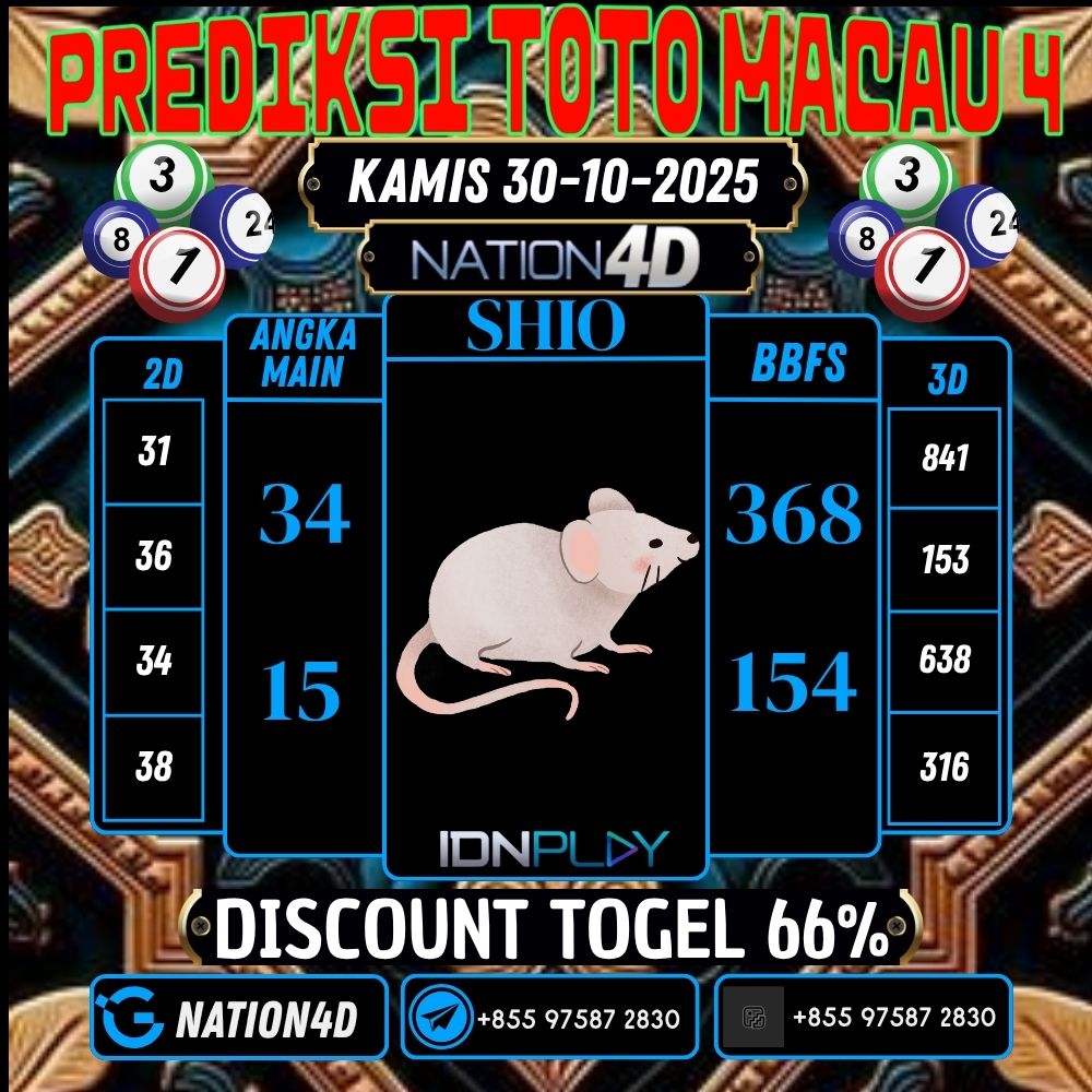PREDIKSI & SYAIR TOGEL TOTO MACAU 4 KAMIS 30-10-2025