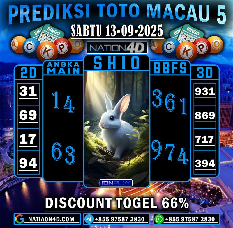 PREDIKSI & SYAIR TOGEL TOTO MACAU 5 SABTU 13-09-2025