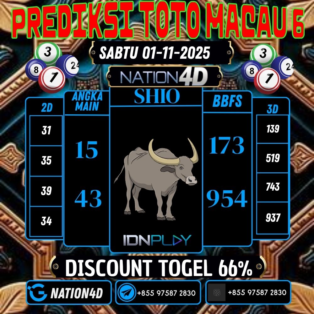PREDIKSI & SYAIR TOGEL TOTO MACAU 6 SABTU 01-11-2025