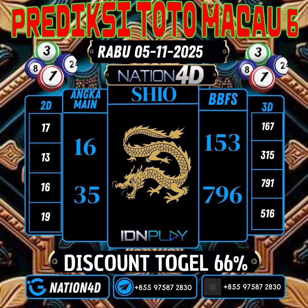 PREDIKSI & SYAIR TOGEL TOTO MACAU 6 RABU 05-11-2025