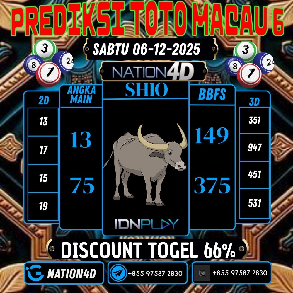 PREDIKSI & SYAIR TOGEL TOTO MACAU 6 SABTU 06-12-2025