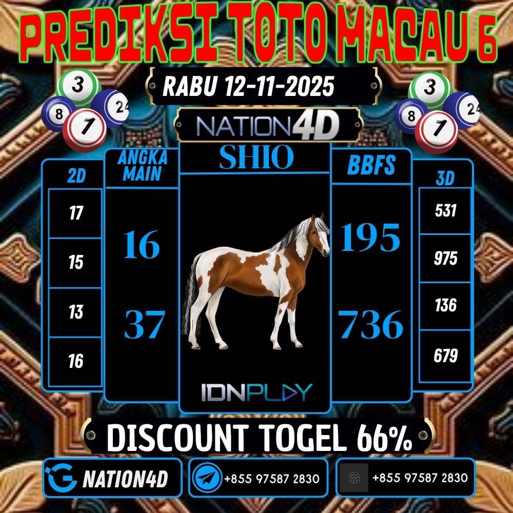 PREDIKSI & SYAIR TOGEL TOTO MACAU 6 RABU 12-11-2025