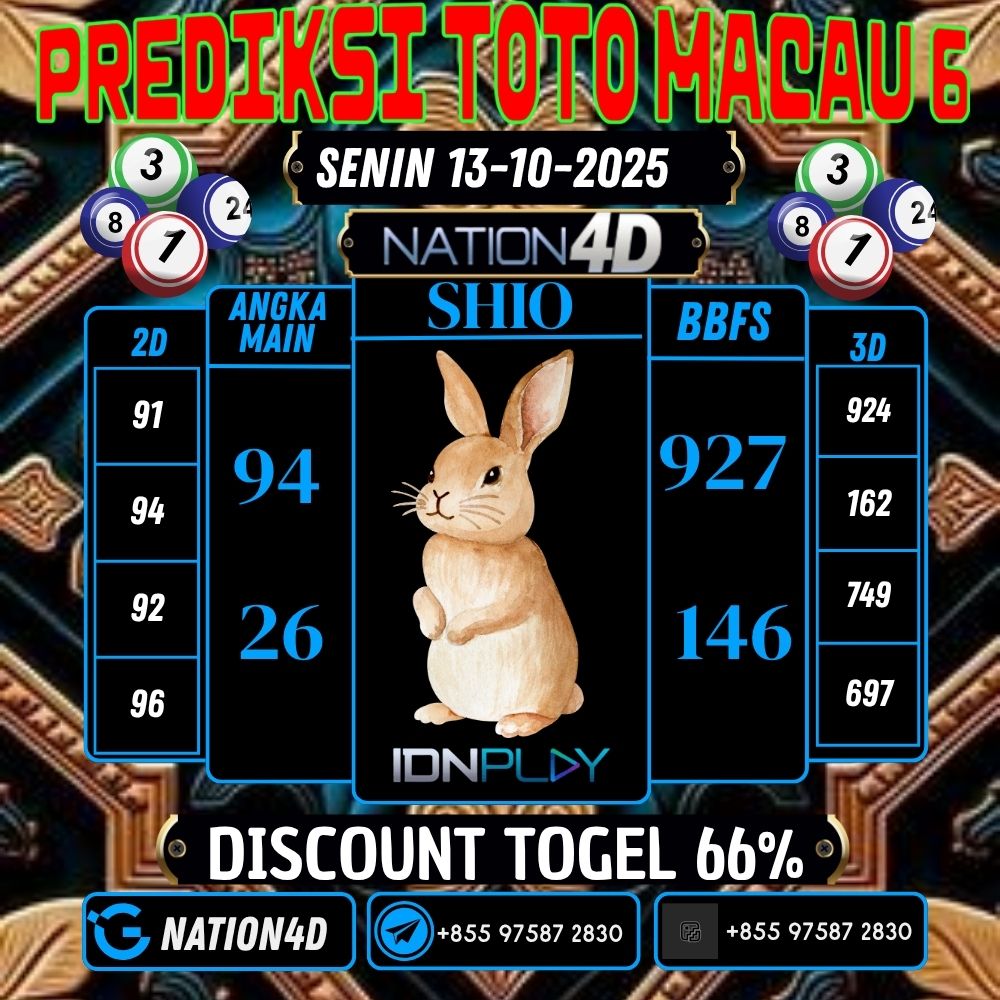 PREDIKSI & SYAIR TOGEL TOTO MACAU 6 SENIN 13-10-2025