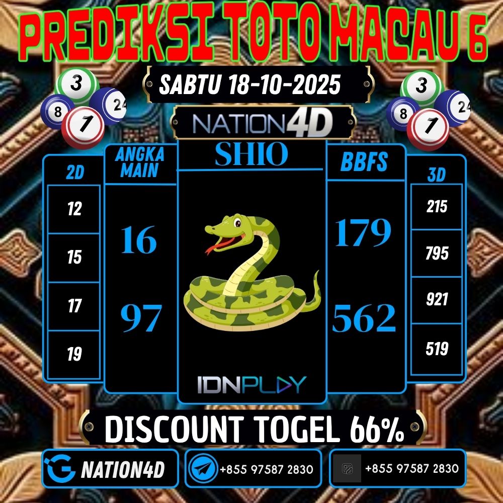 PREDIKSI & SYAIR TOGEL TOTO MACAU 6 SABTU 18-10-2025