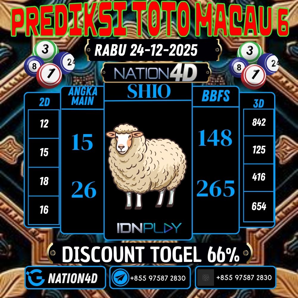 PREDIKSI & SYAIR TOGEL TOTO MACAU 6 RABU 24-12-2025